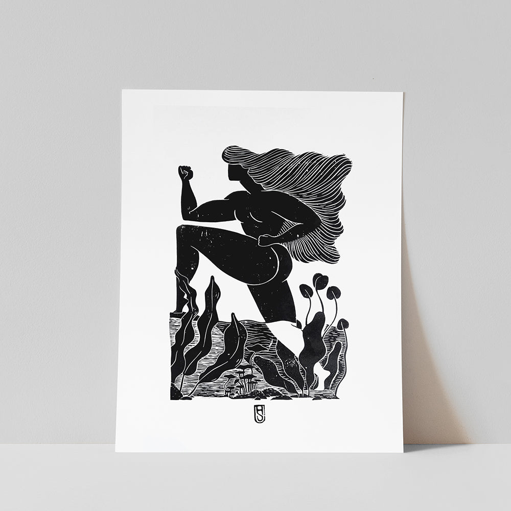 Materials: This print is made using professional, water-based professional relief ink and 200gsm satin-white printmaking paper by Canson.